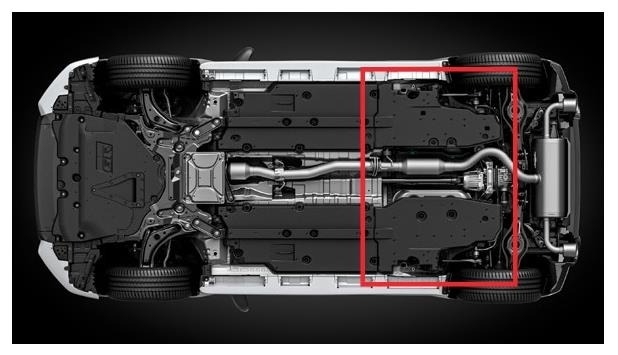 スーパー耐久シリーズで検証したレース用の安全燃料タンクのアイデアを採用。下面をフラットにすることでボディ下部の床下空気の流れを最適化し、Cd値(空気抵抗係数)を低減します。