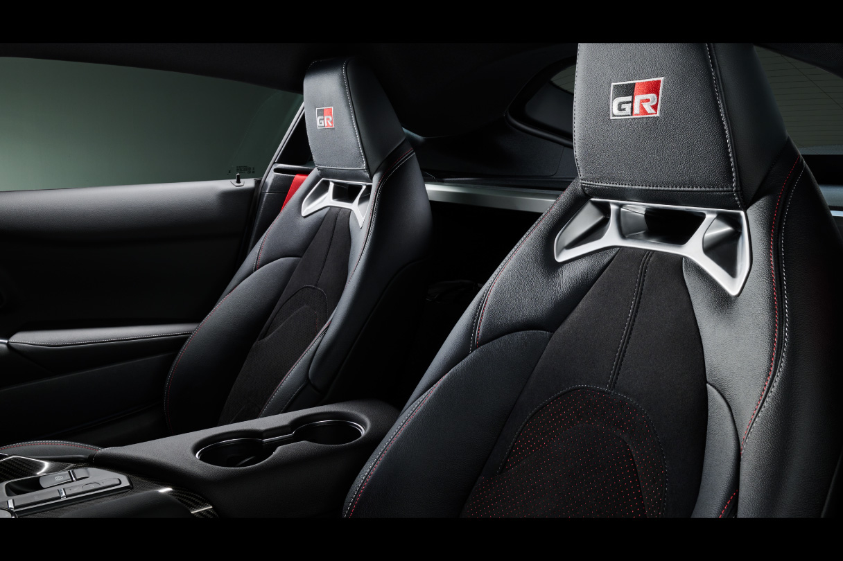 ホールド性能にこだわり、走行テストのフィードバックを積み重ねて生まれたハイバック構成のシート。細身のメイン部と、ショルダー部を含めたサイド部を組み合わせ、腰を中心に身体を保持する機能を追求しています。RZとSZ-Rには、サイドサポート幅の調整機能と電動ランバーサポートを採用しました。
