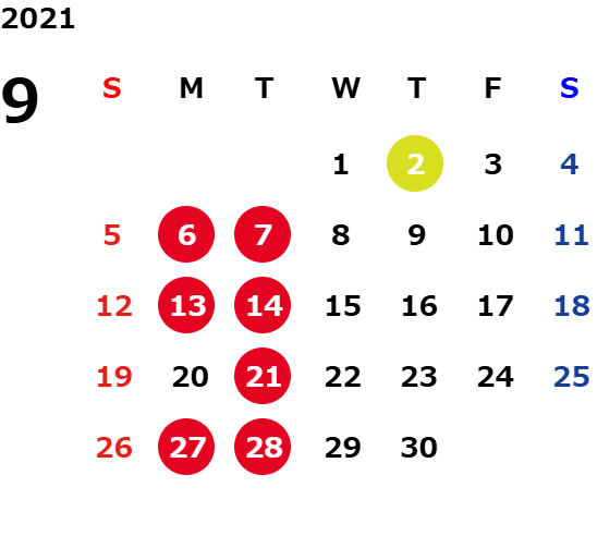 営業日カレンダー