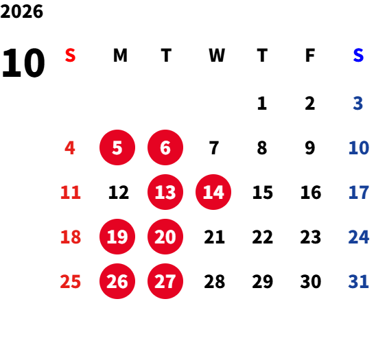 店舗営業中・Web予約受付停止日