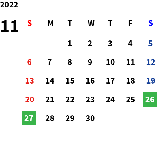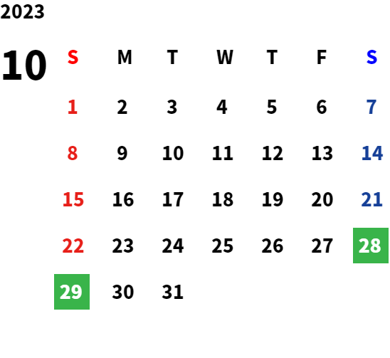 営業日カレンダー