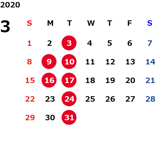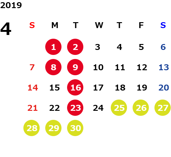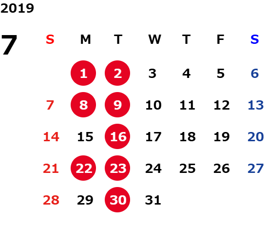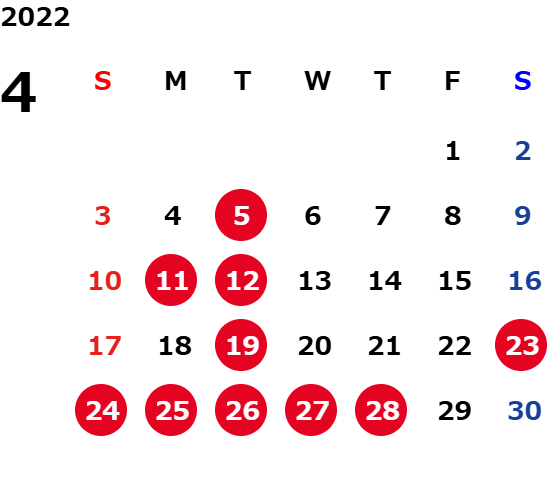 営業日カレンダー