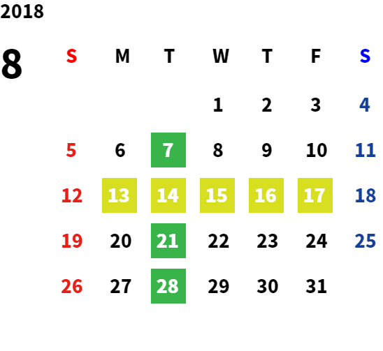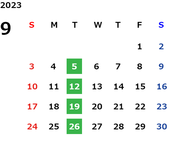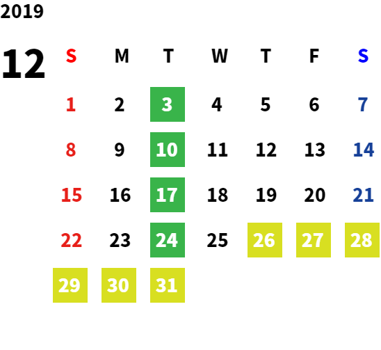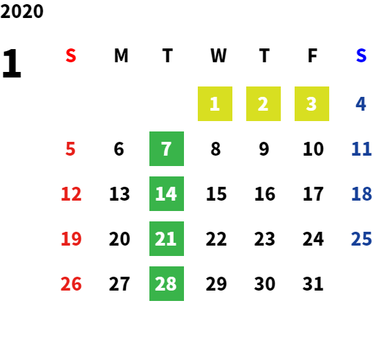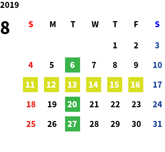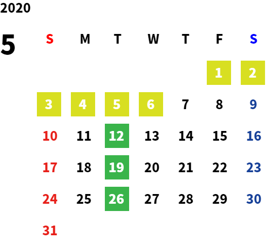 営業日カレンダー