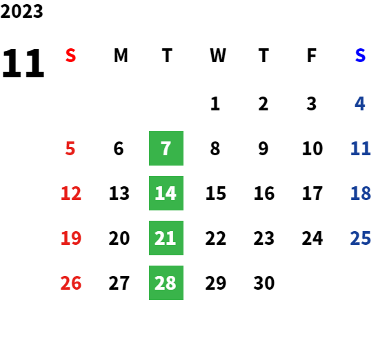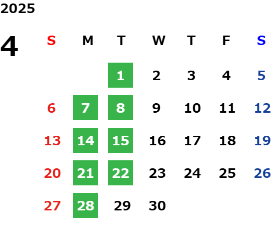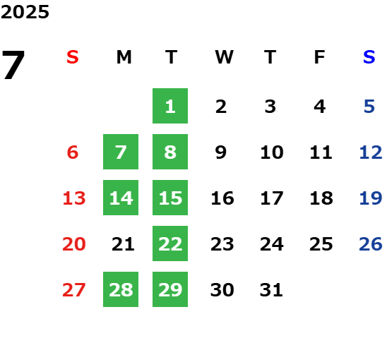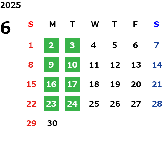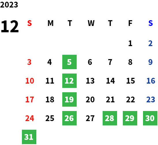 営業日カレンダー